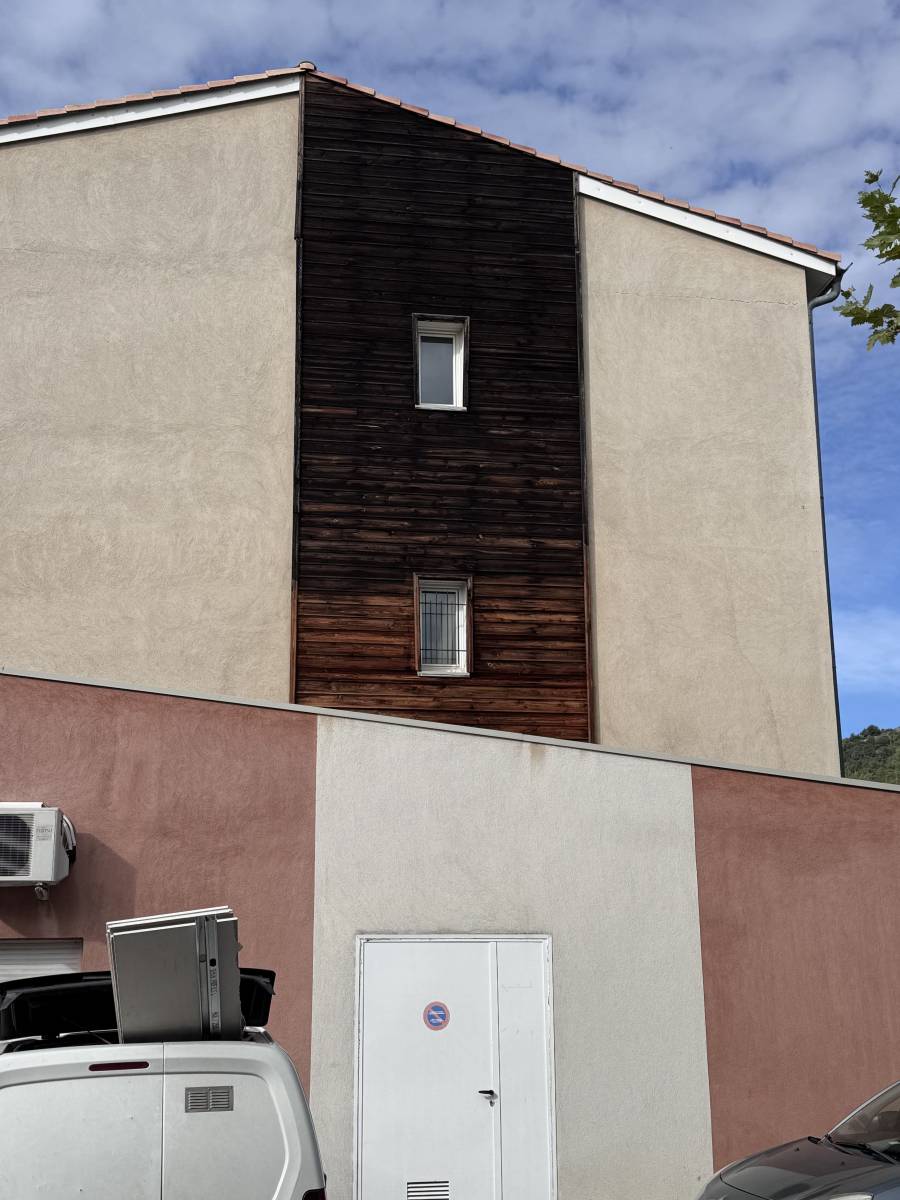 Ce travail a impliqué plusieurs étapes de rénovation méticuleuses. Le processus a débuté par un lavage haute pression pour éliminer les impuretés et salissures accumulées sur les surfaces extérieures. Ensuite, un ponçage et un traitement contre la moisissure et les insectes, puis deux couches de lasure ont été appliqués au bardage en bois pour préserver sa qualité et son aspect.